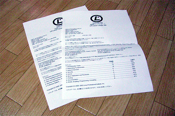 そんなこんなで、4年強の派遣社員みたいな、なんちゃって社長を廃業し、約2ヶ月前から、正社員として某社に就職したわけではあるが、Linuxをサポートするからには、LPICという資格を取得していることが望ましいらしい。私の所属しているこの某社は、社員の価値を高めるために、資格の取得を強く奨励しており、資格に対してかなり高い評価をしてくれる。先も書いたように、必ずしも資格を持っていればエラいとは思わないが、持ってないよりはいい。そういうモチベーションを持っているのも悪いコトではない。だから、資格至上主義とまではいかないが、そういう我が某社が好きである。