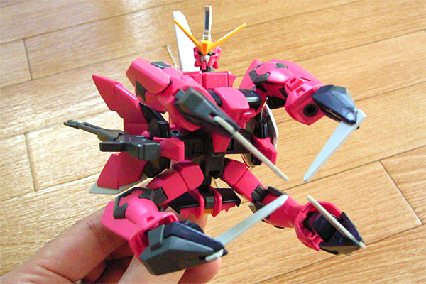 あまりにカッコ悪いポーズを披露したからか、突然イージスがキレ、オイラに向かってきた。ツメ形状では、相手に取り付いて、スキュラという大砲を撃つのが、イージスの基本戦法である。すんでのトコロで、アスランの説得に成功し、スキュラを撃たれずにすんだ。あー、よかった。