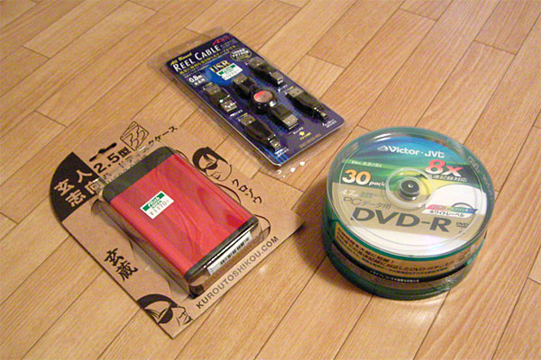 そんなに使うわけでもないが、DVD-Rが焼けるドライブがあるのだから、メディアがあっても悪くない。一応、ノーブランドは避け、有名メーカのDVD-Rを購入。50枚はチト多いのでちょうどいい30枚をチョイスした。しかしこの店、DVDのメディアをポロッと落としたお客に「買い取れッ!!」と、どやしつけ「出てけッ!!」とまで……メディア1枚でそこまで言うかねぇ。一応、客商売なんだからさぁ。周りのお客さん全員、ちょっと不快だったと思うよ。