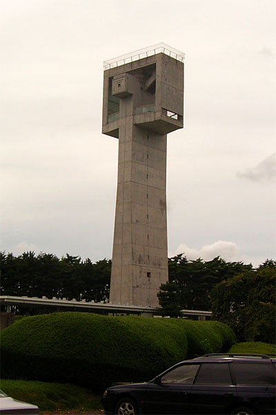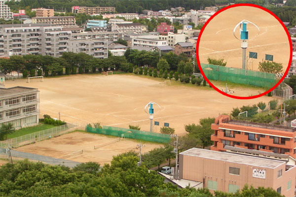 さて、食ったら散歩。すぐ脇の「つくば栓抜きタワー」に登る。4回目……かな。カミさんとは2回目。まぁ、そーゆー青春もありつつ、フト見下ろすと……あぁ!! アレは話題の回らない風車か!? これはよいものを見させていただいた。