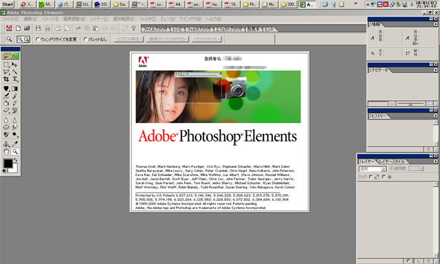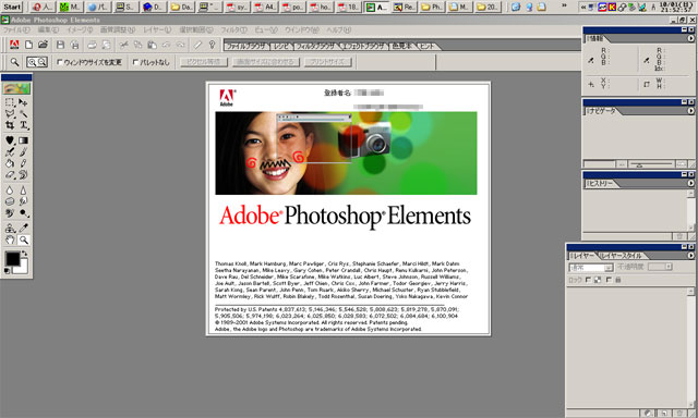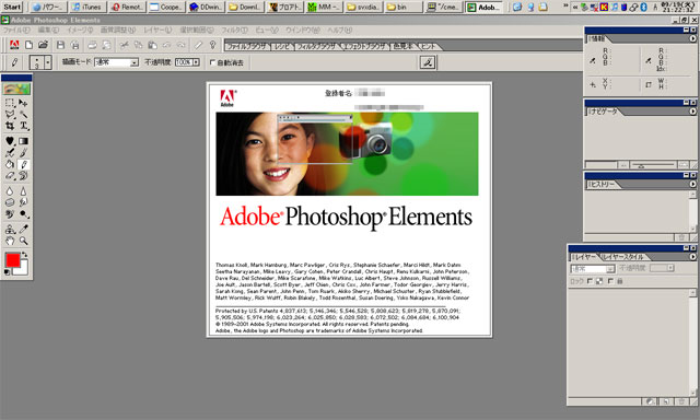 Photoshopを起動するたびに出るスプラッシュスクリーンの中のこのお姉ちゃん……付き合い始めてカレコレ5年以上にもなるが(Elementsと!!)、オマイはいったい誰なんだッ!! こういってはナンだが、特に萌え顔なワケでもなく、特別に崩れてもいないけど、決して毎日のように拝みたくなる顔じゃないぞ。正直、ややうざったい。
