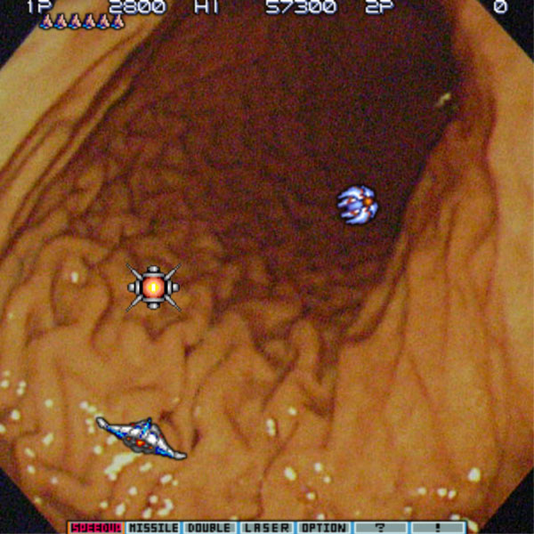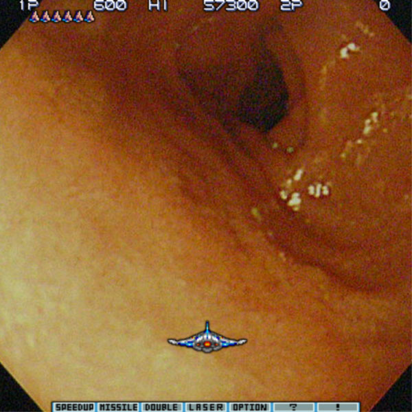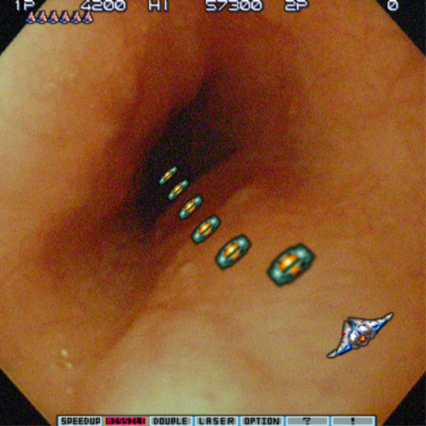 ちゅーわけで、ちょっと呆れられながらも、無事、自分の胃の写真をゲットしたのであった。ただ、そのまま載せるっつーのも、いくらなんでもちょっとアレなので、照れ隠しに「沙羅曼蛇」っぽくしてみるのである。Destroy them all!!