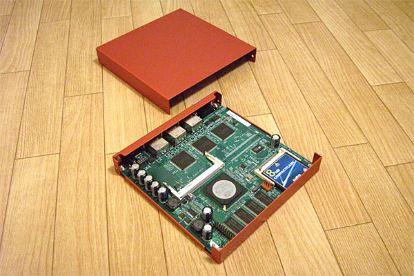 で、こちらは一歩先にRHEL4を導入したWRAP。改めて起動を確認して、クロージャに収めた。基本的に、ルートファイルシステムは玄箱からNFS経由でアクセスするので、ディスクレス。今となっては絶対に手に入らない8MのCFからカーネルをブートする仕組み。クロージャはWRAP専用の赤いヤツ。しばらく前に購入したのでネジをどこかにやってしまってアセって探しつつ、クロージャの作りが甘いのでシリアルポート付近をリーマでウリウリやったりしつつしながら、どうにか収める……ううむ、シンプルでカッチョイイ。