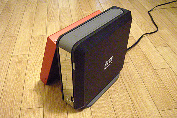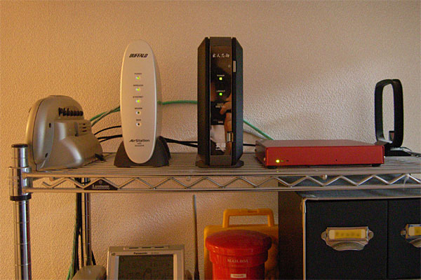 実は設置する場所も、イマイチ納得できていない。電話線からLANを引く以上、基本的にそこからあまり離れた場所に設置するわけにはいかないので、結局はそばにある電話台と本棚を兼ねた金属のラック以外にはありえないのだが、最近ヤンチャ度256%に差し掛かりつつある1歳2ヶ月のイッペイがこのラックを揺らしまくるのが心配の理由。ハードディスクのデリケートさを知らない素人はこれだから困る。だいたい、ラックを揺すって楽しいのだろうか。まったく大人気ないガキンチョである。