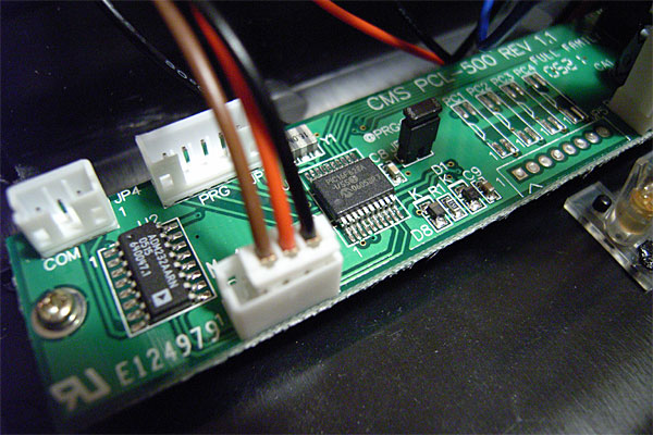 そもそも、どんな部品構成になっているんだろう……なにやら、チップがふたつ載ってますな……PIC16F628AとADM232A……って、おいッ!! 型番聞いただけでジャストミートではないか。それ、オイラの庭の中だよ。周囲を見ると、COM, PRG JPとかあるし、これ、正規の電圧のシリアル信号と、PICのオンボードプログラミング用のコネクタじゃん!!