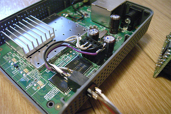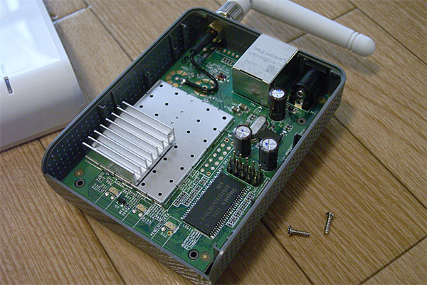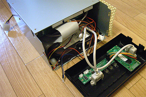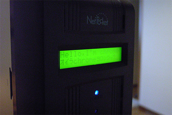 さて、ちょっと安心したところで、フロントのLCDパネルが気になってきた。適当に「echo hoge > /dev/ttyS1」とかやったら、表示されるんちゃうか? ……と、いうのはさすがに甘かった。変化なし。しまったぁ……こんなことなら、BSDベースのOSが動いている状態で通信をスニッフィングして、プロトコルを解読しておくんだった……どうしよう。