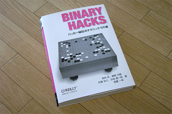 あとは、消費した記憶のあるパーツをいくつか購入しつつ、カミさんにもらった2,000円分の図書カードをこの機に使ってしまおうと、以前から読みたかった「BINARY HACKS」を購入する。いやはや、この本は面白いでっせ。特にオイラの場合X68kの頃にアセンブラを使って以来、その一般的知識だけで、x86系である今の仕事をどうにかサバいているので、ちょっと前からこの辺りの知識をアップデートしたくて仕方なかったのだ。ELF形式とか、objdumpによる逆アセンブルとか、メモリマップとか……ワクワクいっぱいである。