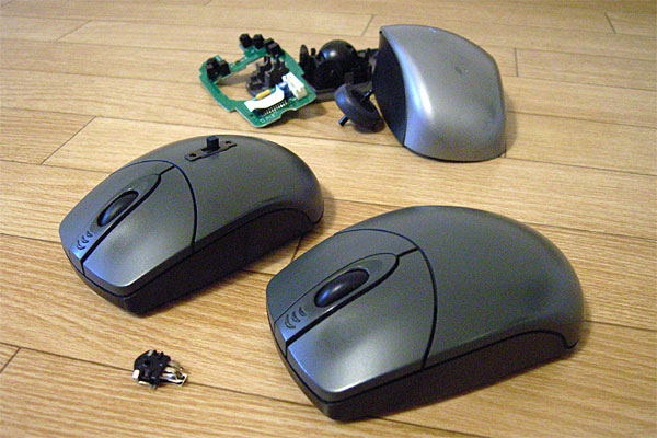 先日からマウスの調子が悪い。例によって例のごとく悪いのはホイールの調子である。約2年前にも書いたが、オイラが愛用するマウスは「ワイヤレストラベルマウス」という名称でPT-2002-MJという型番の、製造メーカ不詳のアイテム。しかしこの製品は、ワイヤレスレシーバ部がUSBメモリのように小さく本体に収納できる点、単4電池1本で電池交換時期を忘れてしまうほど長く利用できる点、そしてなんといっても「ボールマウス」という点が最高なのである。