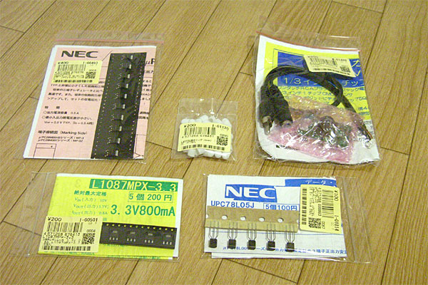 パーツを物色するのにどうもシックリこないからか、全部の棚を見て回った挙句、3端子レギュレータICばかり購入。まぁ、家には売るほどパーツがあるので、最初からあまり買いたいものがあったわけではないのだが。