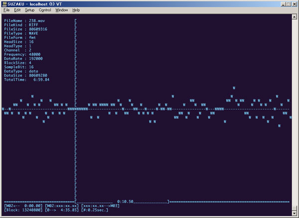 wavファイルができたら、トリミング。こいつは、過去に自作したcccdctを使うと超快適。cccdctは、編集時間表示が44.1kHz用になっていたので、AC3の48kHz用にちょっと修正。あとはサクサクと楽曲部分だけを切り出す。慣れると1曲1分かからない。