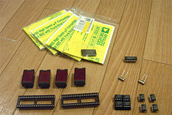つーわけで自作である。PICで作るので、絶対性能は出ないだろうが、大抵は4MHzで動かすPICのデジタル回路が測定対象だから、2us、0.5MS/secも出れば実用的だろう。そのための20MHz水晶、そのためのAD7820である。