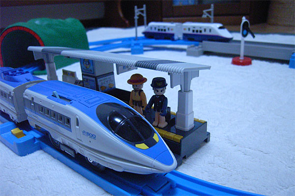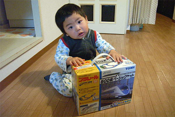 最後は、ヨドバシで500系のプラレール入門セット(2,180円)。前回、500系で帰省した時、オイラの親に「これでイッペイにお土産を買ってあげて」と、金を渡されたのだが、どうせなら土産の適当なオモチャではなくガツンとしたモノを、というワケで購入。