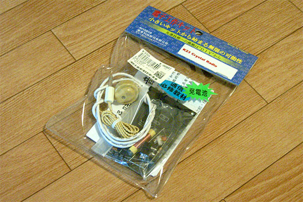 八潮の100円ショップでラジオを物色する。100円じゃなくても、300円であると噂に聞いたのだが……ない。マトモなメーカだと千円は下らないしなぁ……と、八潮の秋月に行ったら、中国製のゲルマラジオキットがあった。350円。コイルとかバリコンとかを個別に買うより安い。すかさずゲット。