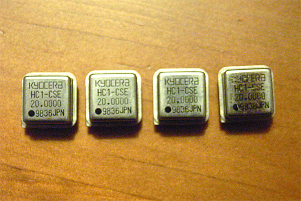 さて、オシロの件も進める。オシロのサンプリングスピードは速いに超したコトはないワケで、当然PICは最高の20MHzで稼働するのである。先日、20MHzの水晶を購入したが、あれは失敗だった。設計段階で、かなりI/Oピンがキビしいことが判明しているのと、複数のPICを「同期動作したい」という要求があるので、単独で発振する20MHzのオシレータを購入する必要があったのだ。
