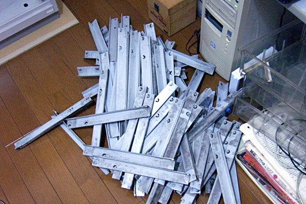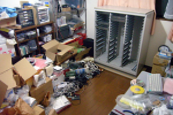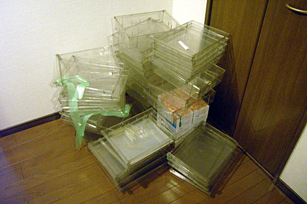 最初は、秋月名物の茶色の紙袋をそのまま床に置いていたが、買い物の回数が増えると、部品を探すだけで大変である。一度、奮起して、すべて袋から出し、抵抗、コンデンサ、ダイオード……と、紙袋に詰め直したが、事態はさして好転せず。そりゃ、イチイチ袋を開けて中をノゾいていては、効率の悪いことこの上ないわな。