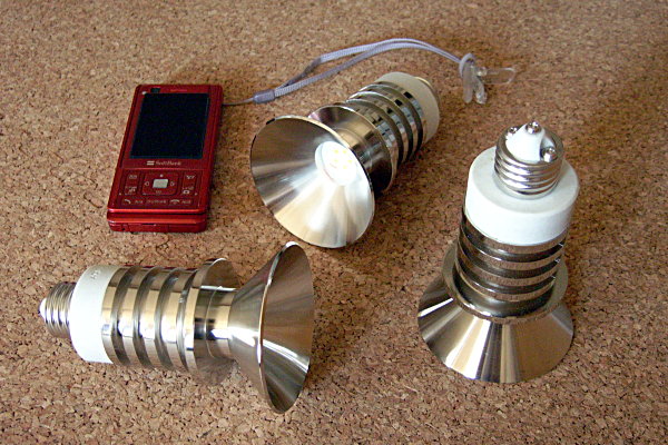 で、妙にサイバーな電球がこれ。カッチョエエッ!! 3色あるので、3色とも購入(ピュアホワイト、ウォームホワイト、キャンドル)。ピュアホワイトは完全な純白、キャンドルは優しい色。消費電流が少ないのは当然ながら、蛍光灯な電球のように立ち上がりの暗さはなく、点けたり消したりには強いと思われる。