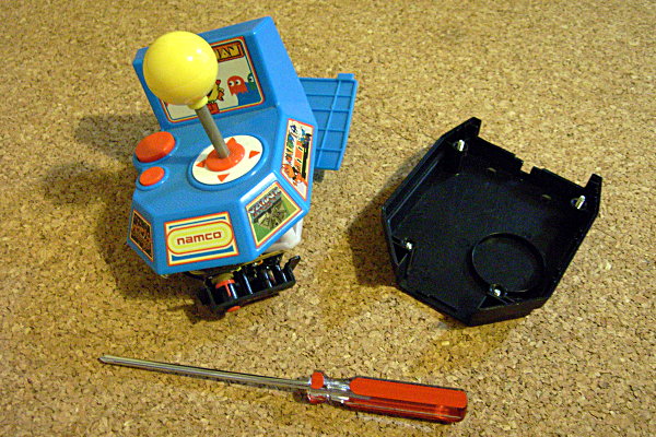 ゴミ箱に捨ててあった、バキッとやった「Namco TV Classics - Ms. Pac Man」のガワがイッペイに見つかって「壊しちゃダメじゃん、直してぇー」と詰め寄られてしまったのだ。「いや、これは壊したんじゃなくて、直したんだよ」とかなんとか、言い訳しつつ、中身はこっちに入れ替えたんだよ、遊んでみる? ……と、そこまではよかった。
