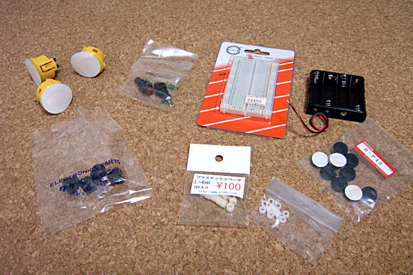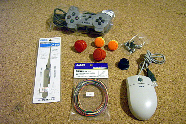 あとは、ケース用の座金付きLED。200円くらいはすると思っていたら、黄色ばかりながら、見切り品で50円だったので、6個も買ってきた。一方で、くやしいのは、サンワのゲームボタン。前回、買った店のすぐ脇で、こちらも見切り品ながらφ30が150円、φ24が90円。そのくらいで買えていたならば、6ボタンにはしないまでも、また、違った構成にしていただろうに。