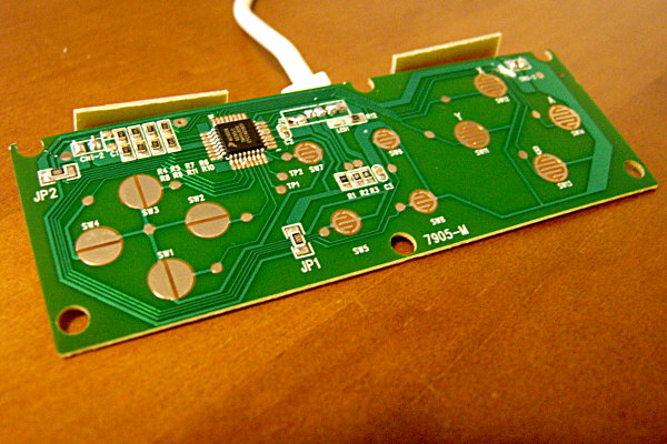 これならば、ゲーム機の機種が変わっても「乗っ取り」基板を交換するだけで、ジョイスティック側の工作は不要になる。また、A/Bボタンの反転はおろか、スペハリの上下逆などの、奇妙なアサインも設定し放題。なにしろ、線を「植えればいい」だけなのである。オマケに、マイコンを載せれば、連射装置やコマンドマクロも組み込みも、その取り外しも容易だ。うっしっし。