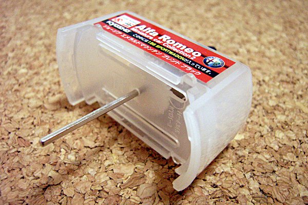ケースには、缶コーヒーのオマケにアルファロメオのミニカーが入っていたプラスチックのパーツを使う。最近、ケースに流用できそうなゴミは取っておくクセがついたが、これが意外と役に立つことも多いんだよね。