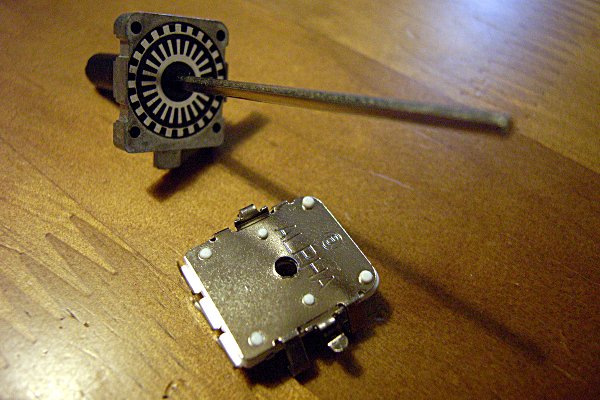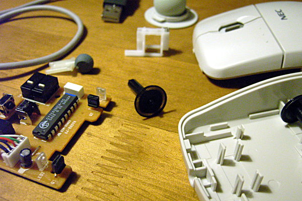 つーわけで、安いロータリエンコーダを「単なる軸」として使い、「ギアボックスを組んで」マウスのロータリエンコーダを駆動してしまうことを考えた……んが、これには工作精度が要求される。かつてない難度の工作になりそうな予感だ。