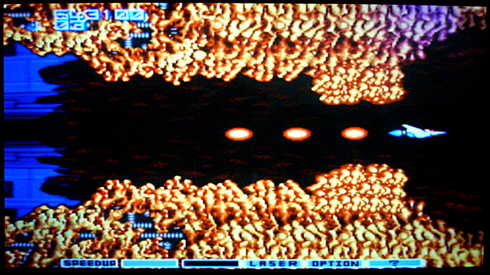 それから、ボスラッシュ面。のっけから、ザブはヤバいくらい出てくるし、ビックコアはフェイントかけてくるし、ゴーレムは微妙に速くて追い詰められそうになるし、テトランは腕の先から出す弾が避けづらいし、ガウは堅めで長期間レーザーの雨を避けなきゃならんし、イントルーダも分離してから今一歩ネバるからアセらされるし、カバードコアのミサイルに至っては当たり判定がデカい上に速度が速い……気がする。