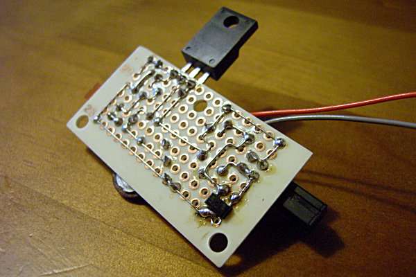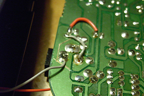 極めてややこしいが、プリント基板のジャック取り付け部のパターンをカッターで切りつけ、正規の電源ラインから切り離しつつ、そこからの入力を新設した電源基板の入力に接続、そちらからの出力を正規の電源ラインに接続、という、ややこしい作業が必要になった。ああ、ややこしい。