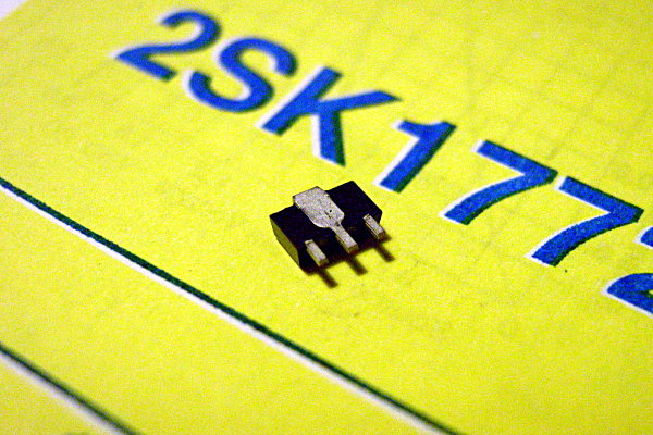 よくよく考えると、このチップFET(2SK1772)は、チップ裏面の面積の多くがドレーン端子になっている。このせいで妙なところに導通してしまっているのだろうか? 一度、チップFETを外して、FET実装位置の下のパターン(アニュラリング)だけをコテでウリウリして剥がし、もう一度、実装しなおす……