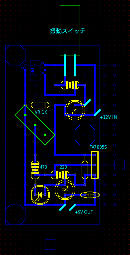 ……んが、動かん。振動スイッチによってFETをキックし、電源をオンオフさせる仕組みなのだが、オンになりっぱなしだ。ゲートには振動スイッチを経由して電源電圧がそのまま作用する設計なのだが、ゲートの電圧が抜けているのにドレインがGNDに落ちっぱなし。FETの破壊モードってどっちだっけ? ショートならば、FETが壊れている可能性を疑うが。