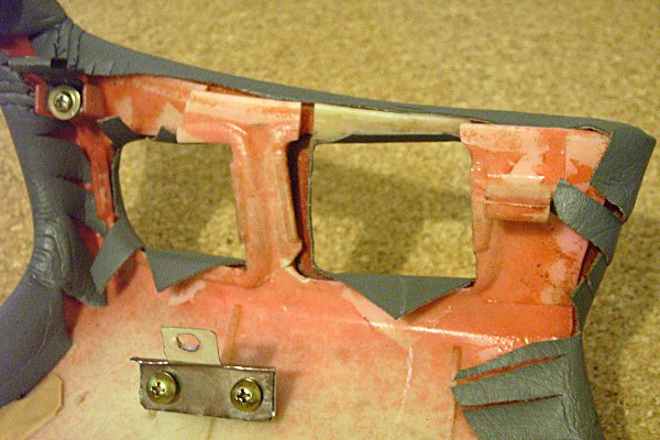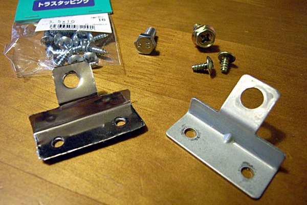 左側にも金具を取り付けるべく、右側の金具を外し、それと同じモノをもう一個作ることにする。左側の金具の形状が右側と同じである保証はないが、このクソ暑いのに車でガタガタと現物あわせとかしてられんので、バクチで作る。つーか、この内装を外して持ってくるだけで、既に3.3リッターは汗を流してるし。
