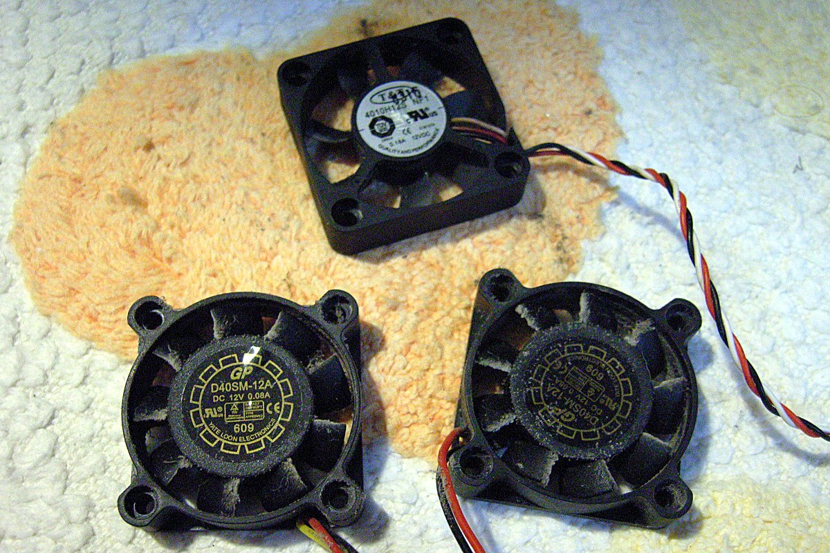 ここんとこ、終始、ファンが出している異音と思われる音が、ギーギーといっていたので「ギーギーいうのは回ってる証拠だぜッ!!」などと、都合のイイことを考えていたのだが、思い返せばこのケース、12センチの電源ファン、4センチのチップセットファン以外に、4センチのケースファンが2つ付いていることを忘れていた。ギーギーいっていたのは、そのケースファンのウチのひとつ。