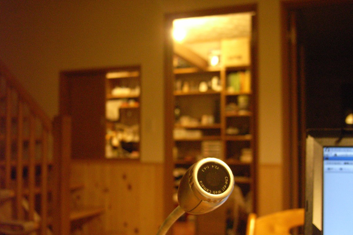 要するに遠隔地に映像配信ができればよいので、その方法は無数にあるが、ここは長いRCAケーブルではなく、PCを使うべきだろう。手持ちで使えるアイテムは……ロクに使わずに死蔵していたUSBのWebカメラだ。いやなに、引っ越しのゴタゴタの最中に「俺を使えよッ!!」みたいな顔をして登場されたんだから仕方ない。