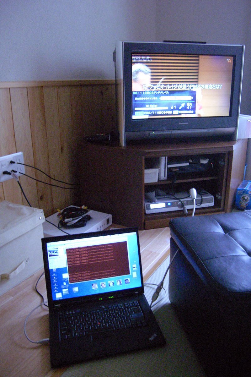 ただ、ここに小さな問題がある。リビングのテレビ設置位置とアンテナの取り付け位置が極めて離れているのである。まぁ、問題というか、通常ならそんなのは「てりめぇ」であり、通常はカミさんとのVoAP(ボイスオーバエアプロトコル……声掛け)通信等により調整をするものであり、それで十分なのであるが、私は自分の目でレベルを確認しながらアンテナの向きを調整したいのである。いや、調整しなくてはならないのである。そうでなくては「その筋」ではないのである。