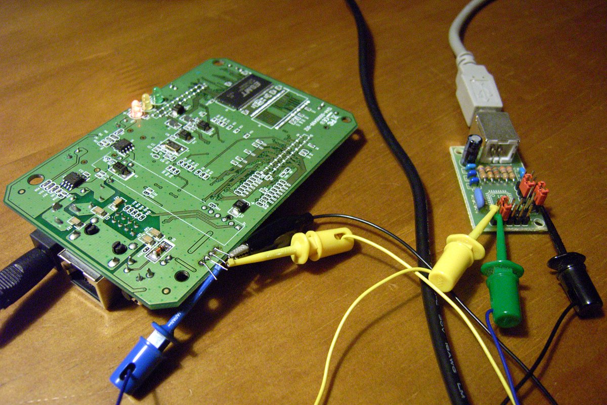 もう、ずいぶん前になるが、FT232BMを使った習作基板を引っ張り出す。本当は5Vロジックだが、構うめぇ。まんま、3.3Vが出てる足を、習作基板のRxにツッコみ、ThinkPadに接続、minicomを立ち上げる。