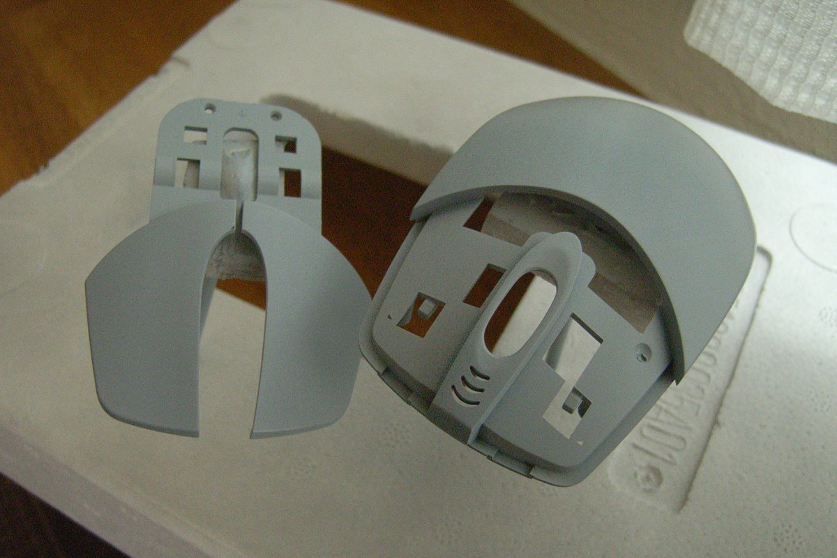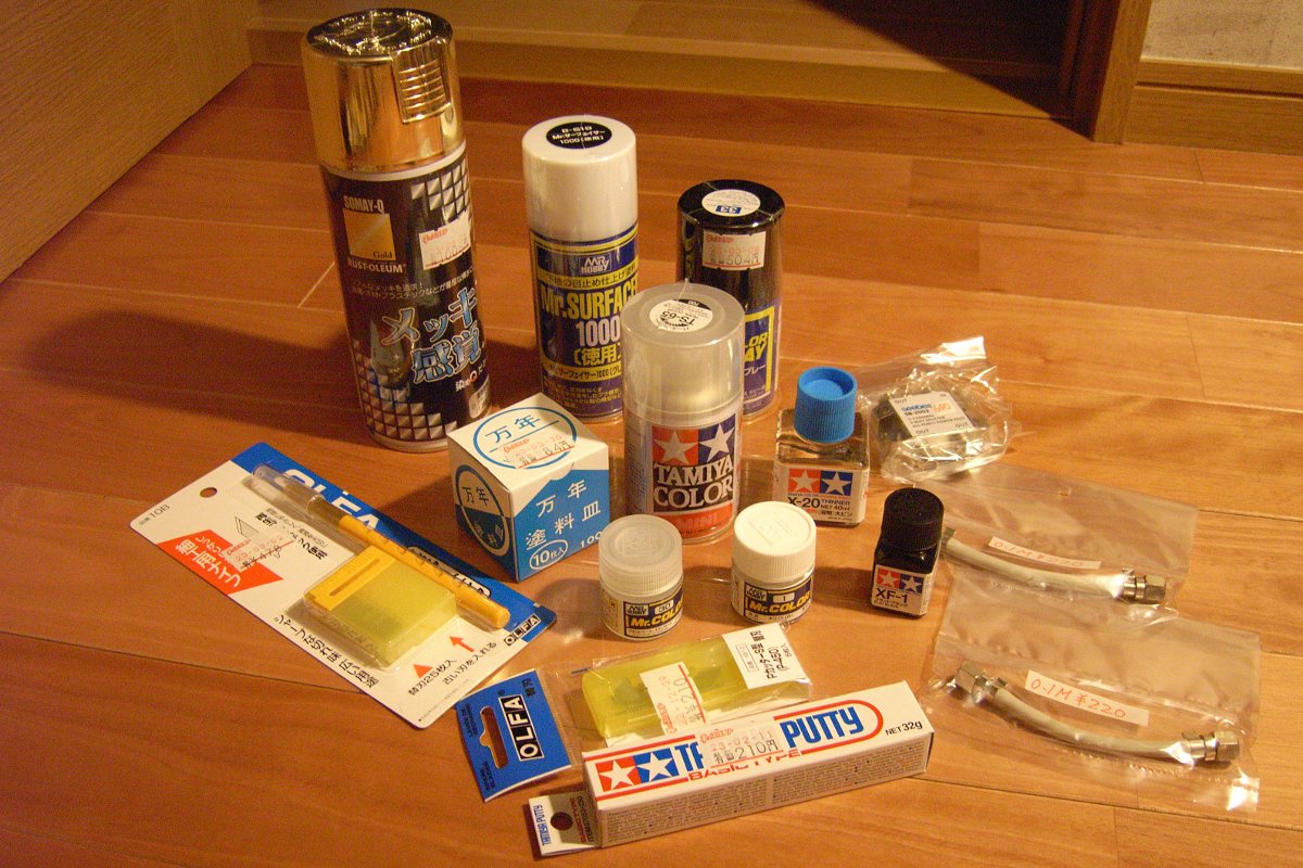 先日、購入したサフェーサを吹く。ガンプラなんかの製作記事でよく見る、部品を灰色にするヤツだ。正体は、溶剤で溶いたパテ、などという話も聞いたことがあるが、なるほど、表面が滑らか、かつ、適度なザラつきを有する状態になる。