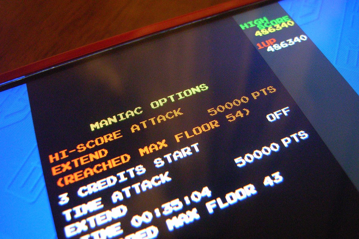 帰りがけに、3度目のドルアーガ。いきなり1階で時間切れしてウィスプに捕まり、20階あたりでタコミスを連発して、残機ゼロ。んが、そこから粘る粘る。しかし、39面の開始直後、すぐ横にレッドウィスプ……サギだ。しかし、60階は見えた気がするぞ。