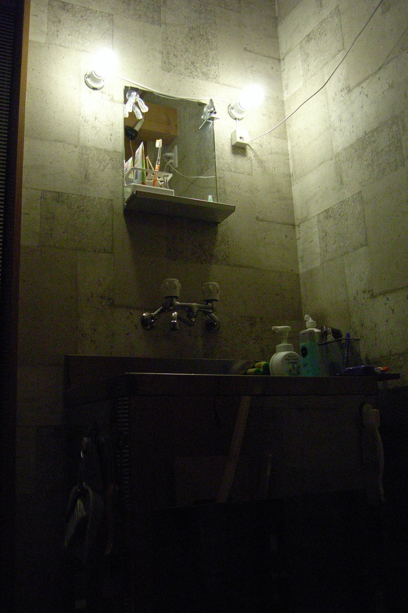 少し大きめの浴室にして、壁も床もチョイスして、かなり気に入っている。そのせいか、入浴時間が3倍になってしまったが。しかし、気になるのが照明のクリプトン電球。いまだに白熱灯って。しかも40wが2灯って……明るいのはいいが、そりゃ、食い過ぎってもんである。
