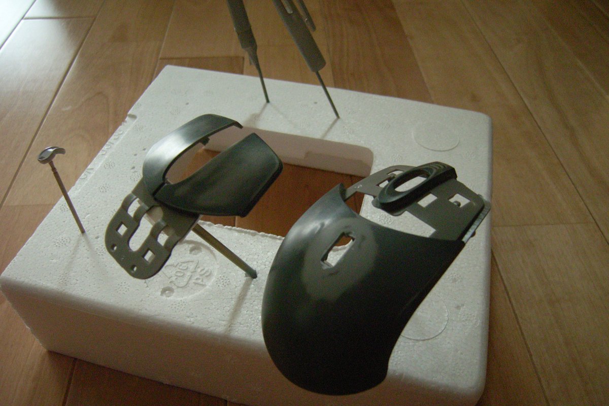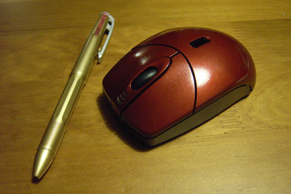 塗料は、以前にも使った「メッキ感覚」というヤツ。クリップ部分は、マスキング処理して100円ショップの「シルバー」で、マウスは100円ショップで200円で買った「ルビーレッド」で塗装。