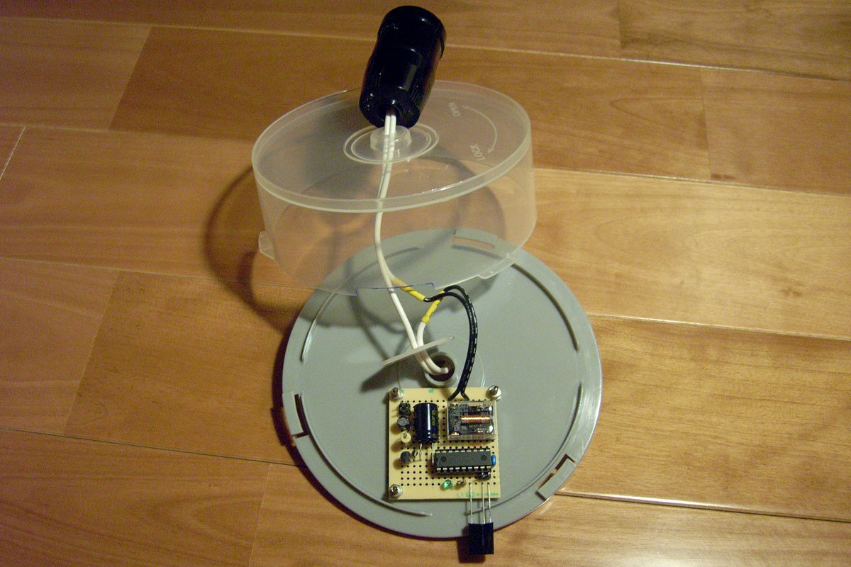 赤外線リモコンは、既存のテレビのリモコンを流用。「1」でオン、「3」でオフ、「2」で10分オフタイマ開始、繰り返し押すことで10分ずつ時間を増やせる。残り時間は、押した直後のLEDの点滅回数で知らせる仕様だ。