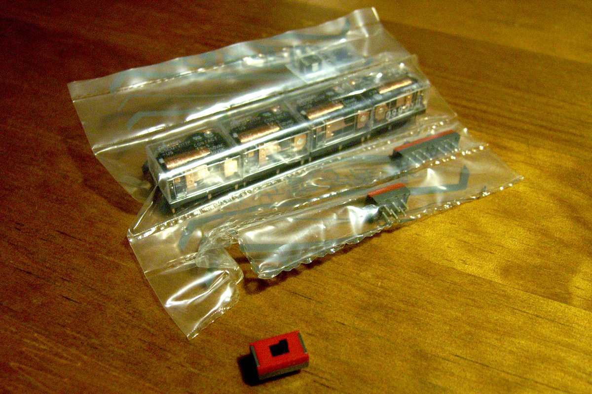 「G6CU-2117P-US DC5V」は、消費電力を抑えるために、ラッチングタイプを選択したもの。制御線は、両方ともPICのI/Oポートに直付け。ただし、電流量が多いので、両端とも2ポートにつなげてある。