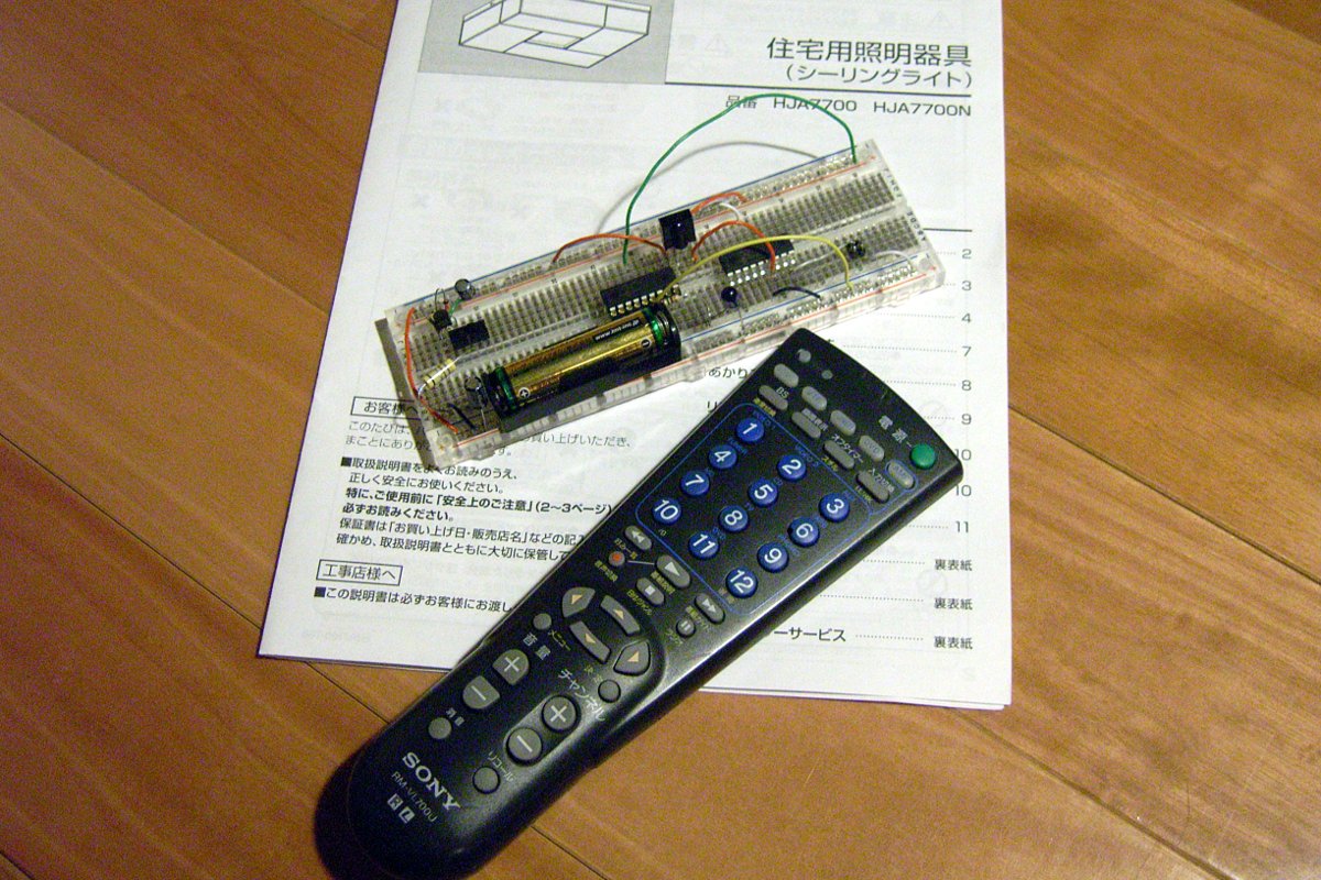 先日、自作した照明機器(?)の赤外線リモコン制御化に成功したので、少々、勢いづいている。そこで、これを勢いに乗じて、我が家の和室に付いている、パナソニックの和風シーリングライトHJA7700用の赤外線リモコンを自作するのである。