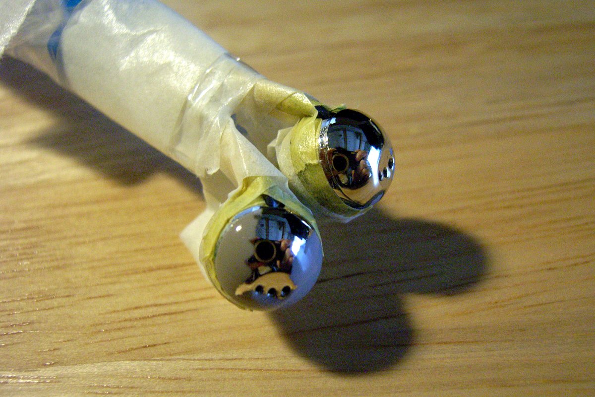 「CRVP1738」はガワの外に取り付ける予定だったが、基板の縦横を間違えて半田付けを進めてしまったところ、ちょうどうまいこと外に出る形になったので、スピンドルケースのフタを一部切り欠いて今の形になった。