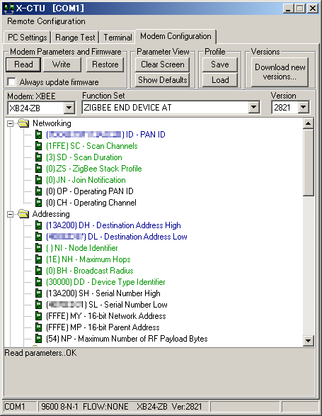 DIGI社に悪い印象を抱いているとはいえ、XBeeの代替となるパーツはそうはないから、ジタバタしても仕方ない。とりあえず、追加購入した2個のXBeeをエンドデバイスに仕立て上げる。巷ではDTRやRTSの接続が必須とされているようだが、そんなもんつながなくても、ちゃんとファームウェアを流し込めた。