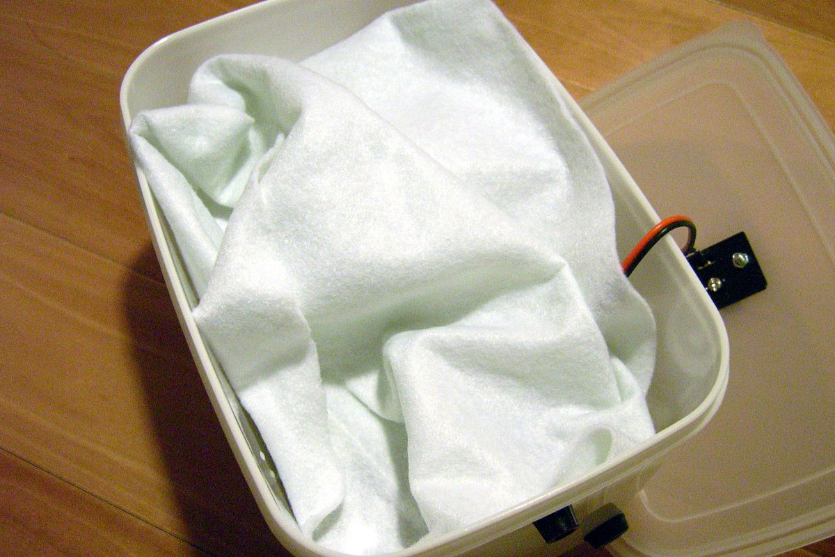一方で、内部には吸音材を貼るのがセオリー、ということなので、適当にフェルトを詰め込んでみることにした。見た感じ、いかにもモコモコな状態なので、これはモコモコな音になりそうだな、と思ったら、まったくもって想像通り。「モッコモコにしてやんよ」という音になった。当然ながら、入れるにしても、もう少し控えめに入れる必要がありそうだ。