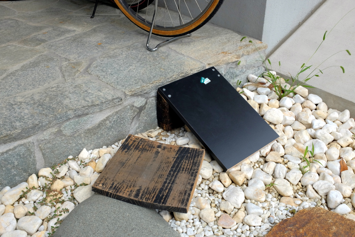 スプレーで黒く塗装して使っていたのだが、たまたま最初から黒い板を見つけたのでそれを買ってきた。250円。端材にしては安くない気もするが。ちなみに今回は木目の方向は大丈夫なのだが合板なのが微妙かも。