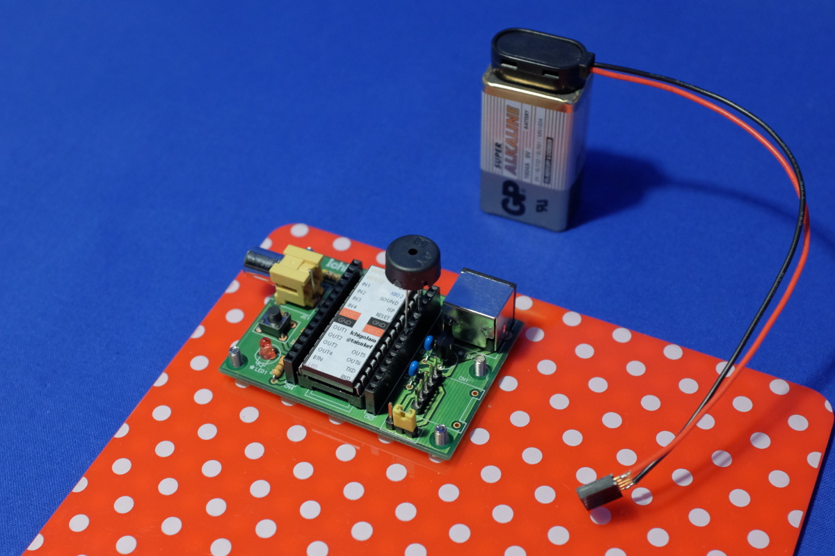 小学校4年生になったばかりのウチのガキに、そんな話をしていたら「やってみたい」とのこと。うーむ、それはとうちゃんにとって、ものすごく嬉しいのだが、たぶんイマドキのガキンチョには一瞬で飽きられるシロモノのような……と、思いつつ、イソイソと注文して、イソイソと組み上げる。あまりケーブルがプラプラしていると、それだけで使う気をなくすので、キーボードに一体化できるよう、適当なプラ板を用意。ダイソーで売っていたクリップボードを切ってネジ穴を空けただけなのだが、なんとなく赤に白の水玉がイチゴっぽくてIchigoJamのイメージにぴったりだ。ちなみに、電源も、面倒がないように電池給電仕様に変更。