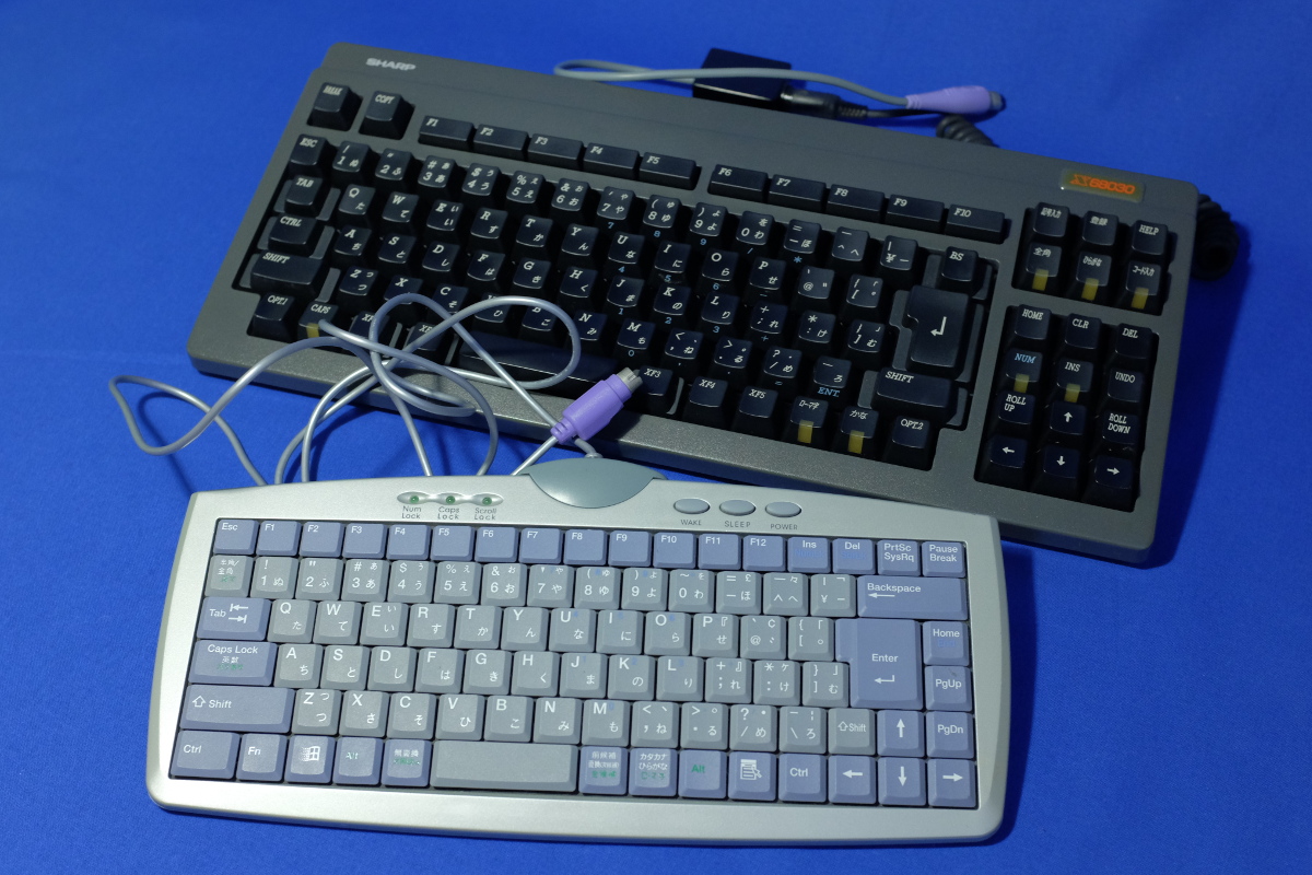 試しに、10年以上前にレストアして、PS/2変換アダプタまで自作したX68030Compact用のキーボードがあるので、これも味があるかも、と試したがこれもダメ。化けてしまう。