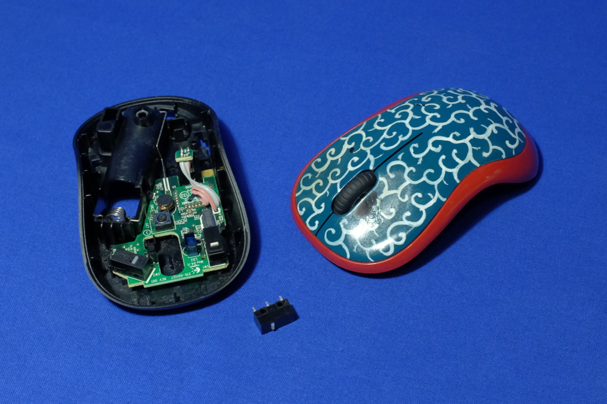 先日から、マウスの左ボタンがチャタリングを起こすようになり、うっとおしいったらないので、買ってあった色違いのグレーと入れ替えたのだが、ダメになった方のマウスを分解し、マイクロスイッチを手持ちのものに交換したらあっさりと治ってしまった。
