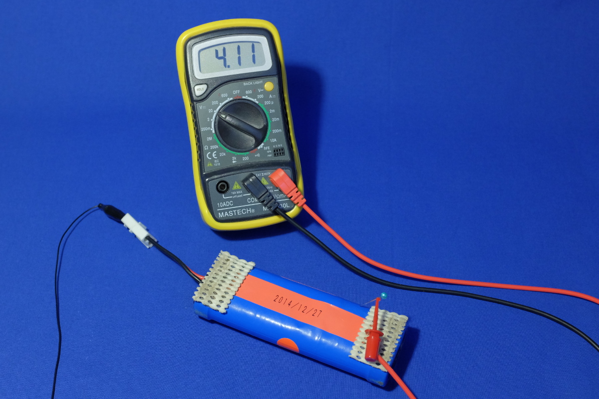 気づけば、1.36x3=4.08V, 1.36x2=2.72Vという状態なのだから、残りのセルはキッチリと電圧がバランスしており、まったく健常な状態という事になる。うーむ、もったいないなぁ、これ。このカスタムパックバッテリは、ローエンドのバッテリだから、組み替える価値もないし、セル単位で買って、修理することもできないしなぁ。