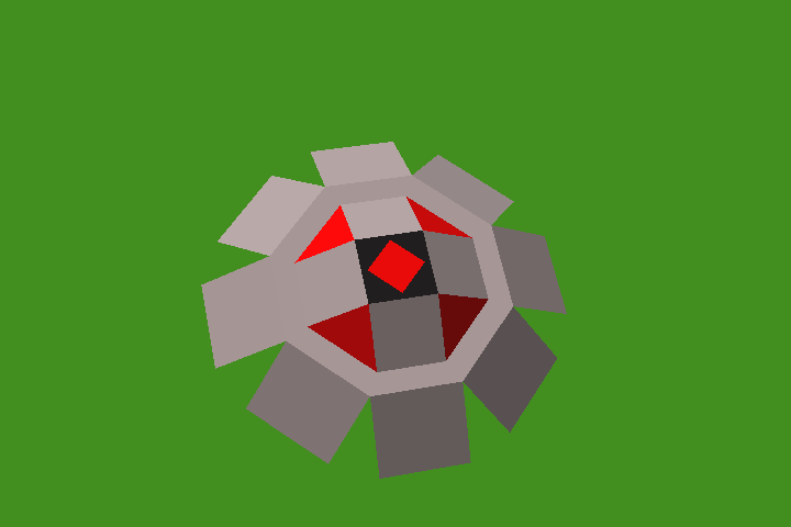 というわけで、3DCGのイロハくらいは身につけているのであるが、OpenGLはポリゴンが基本なので、ちょっと勝手が違う。ペラペラで中身がなく、表裏があり、勝手に影がつかない。一番驚いたのは、陰影をつけるためには、ポリゴンの法線ベクトルを自分で計算しなければならないところだ。
